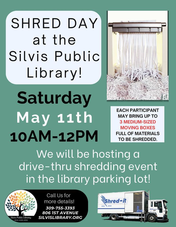Source : www.facebook.comShred Day at the Silvis Public Library, Silvis Public Library, May